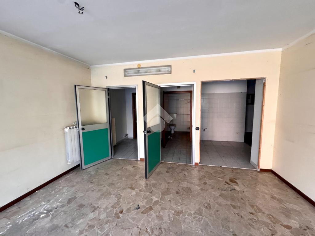 Situato al piano terra di un condomio in ottime condizioni, si sviluppa su una superficie di 124mq, diviso in due ampie sale, ognuna con doppia vetrina su strada dotate di sacinesce elettriche, due bagni a norma per disabili. l'immobile si presta, attraverso una mirata ristrutturazione a qualsiasi tipo di attività.
