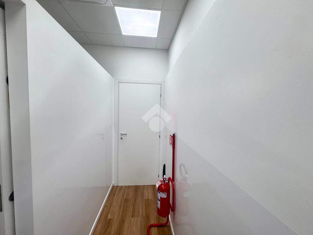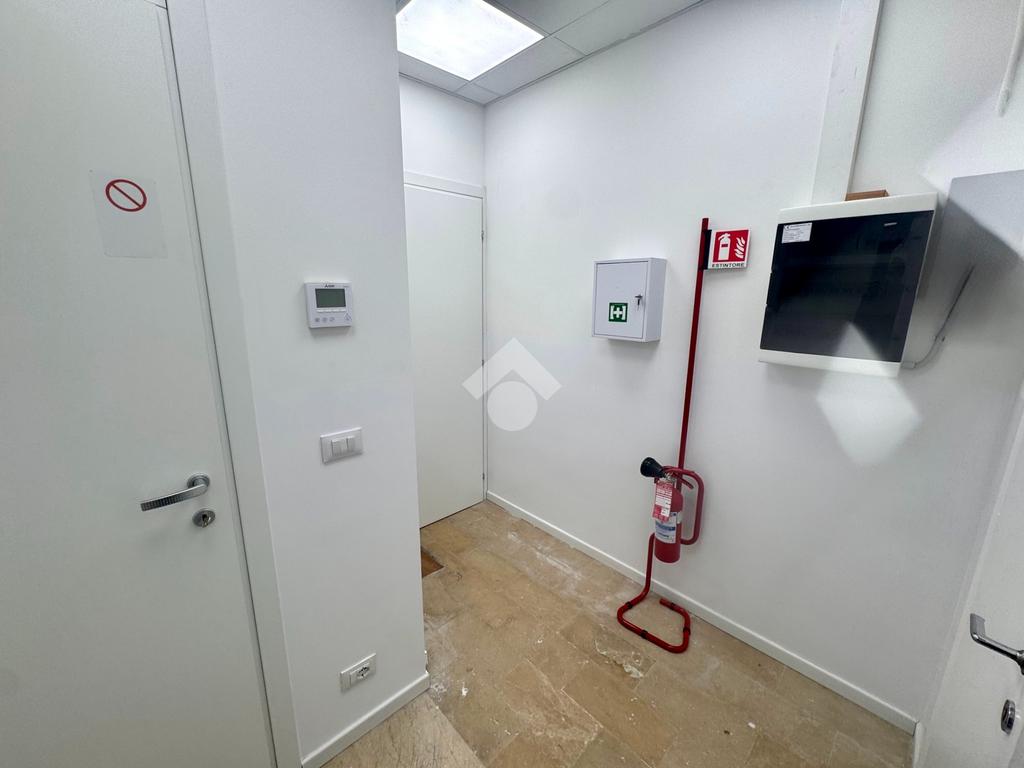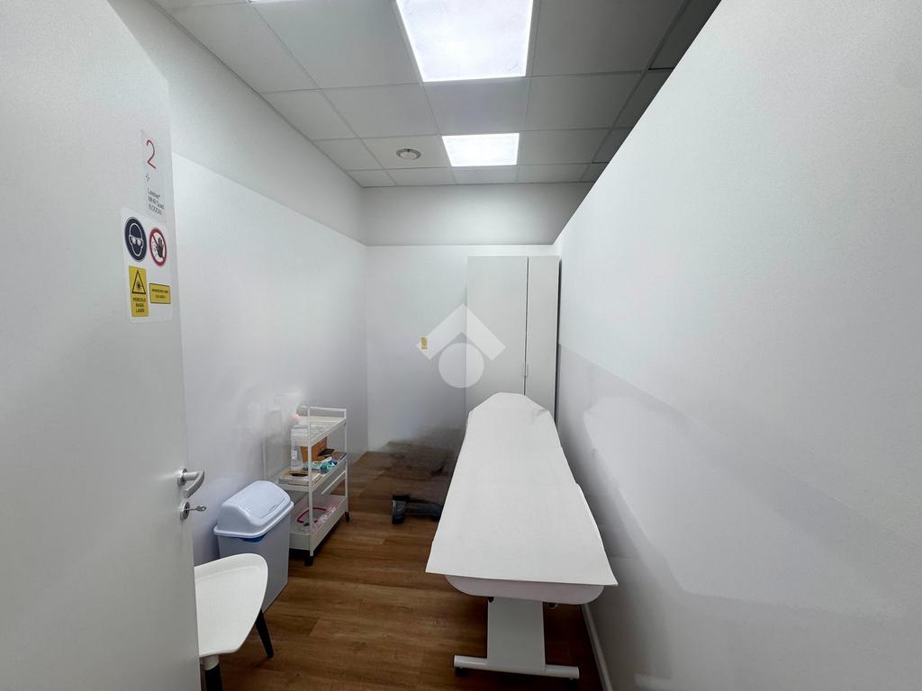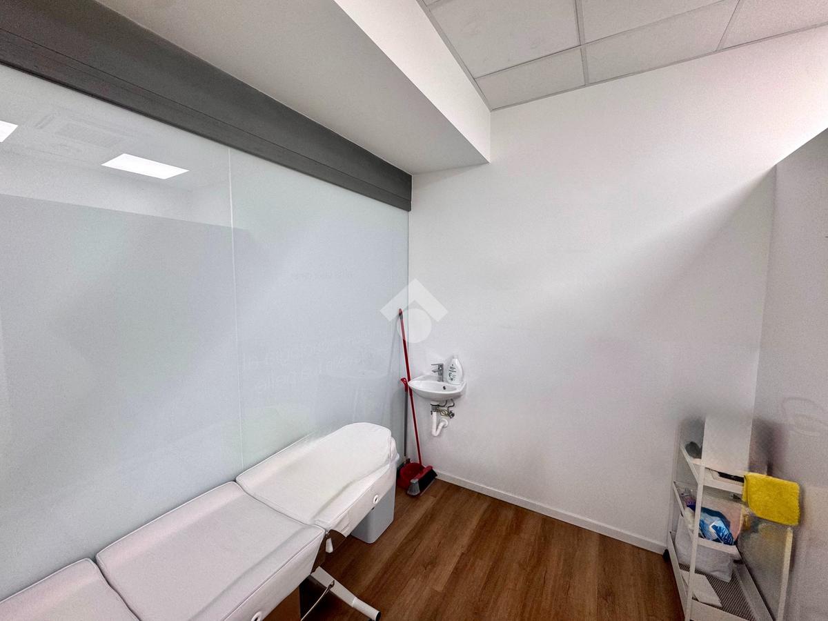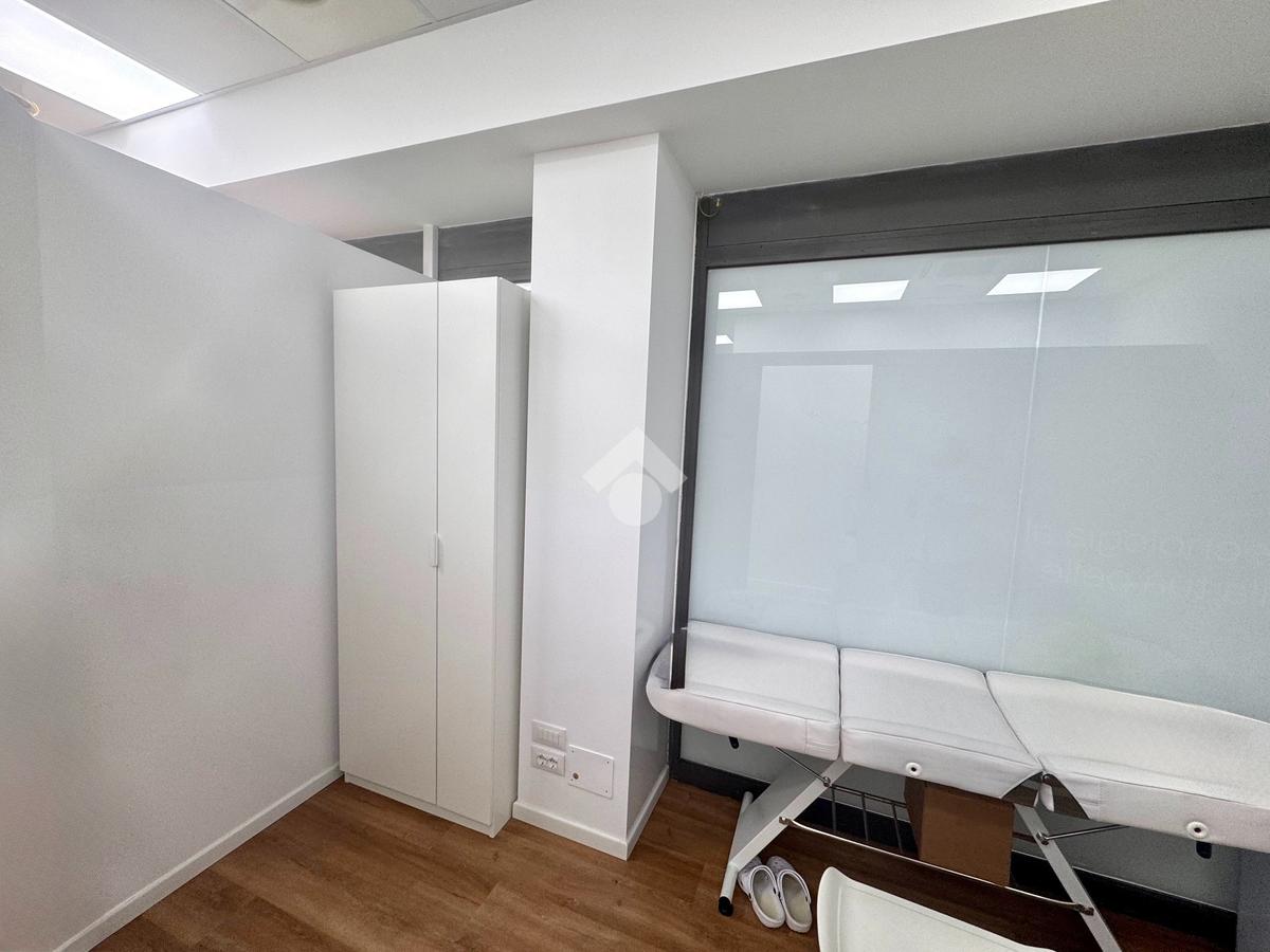 E' composto dalla sala d'attessa all'ingresso, 2 stanze operative, un piccolo magazzino, antibagno e bagno; è dotato di riscaldamento e raffrescamento ad aria, ma con la possibilità di allacciarsi alla caldaia condominiale.